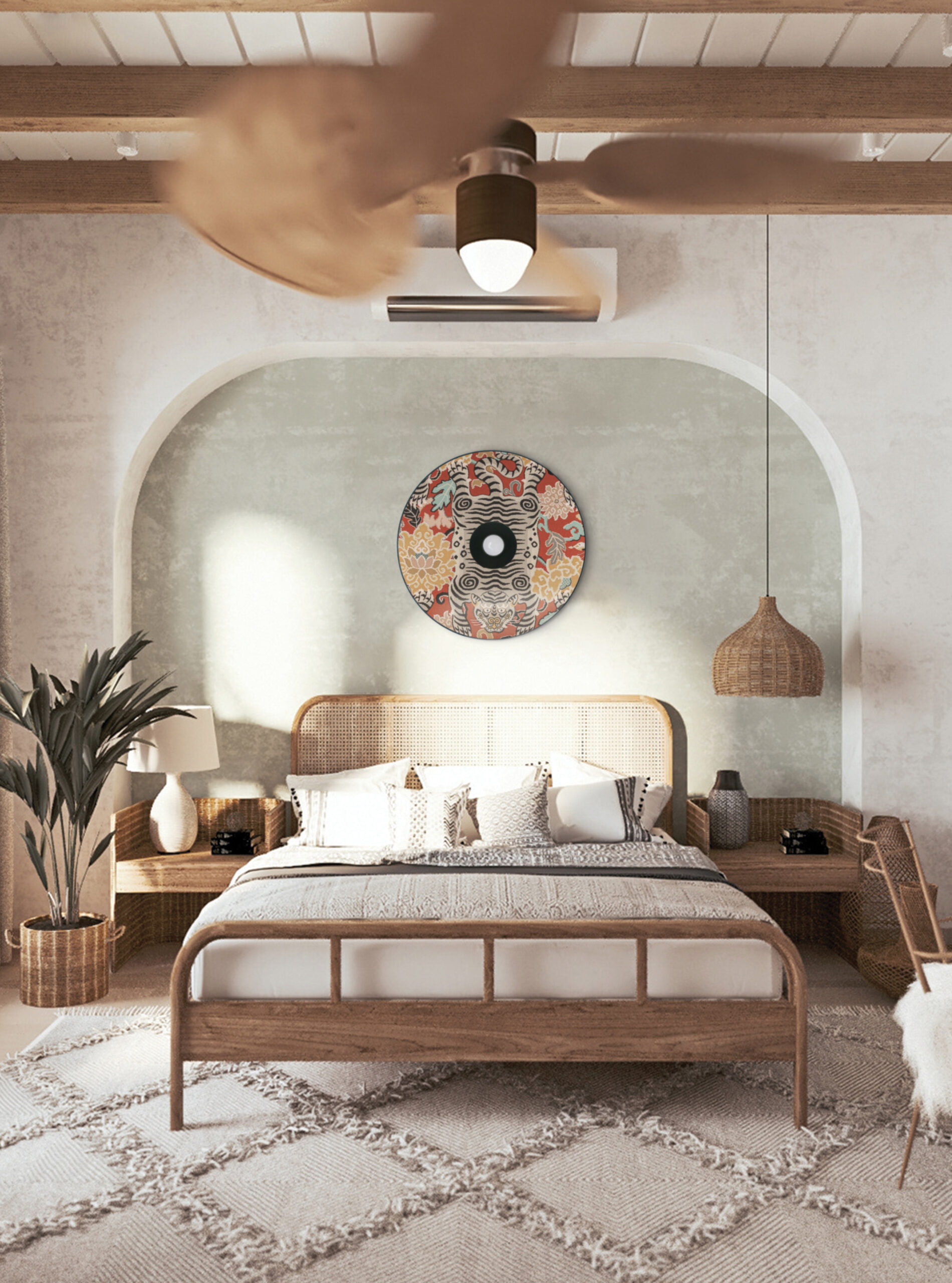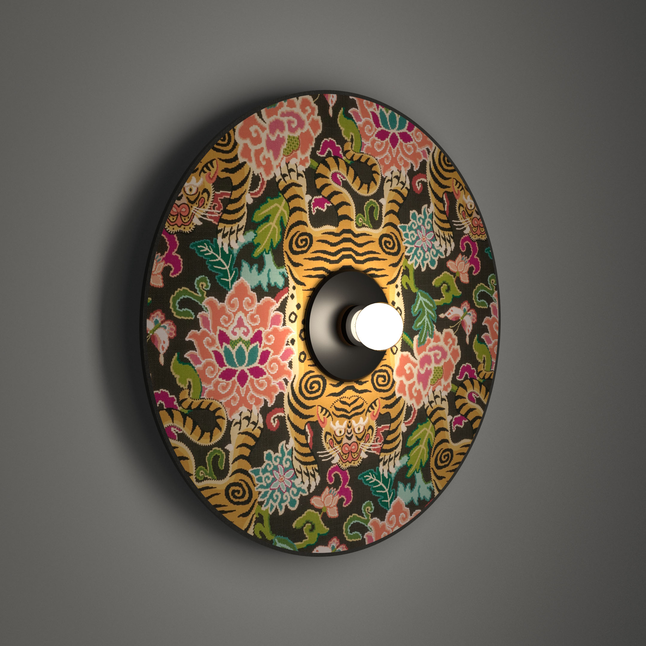 A premium front-lit series of wall & ceiling lighting in high quality fabrics entirely crafted by hand, designed exclusively in our studio. Simple and essential but at the same time rich in atmosphere this series is meant to give an exotic character and bring life to large spaces.