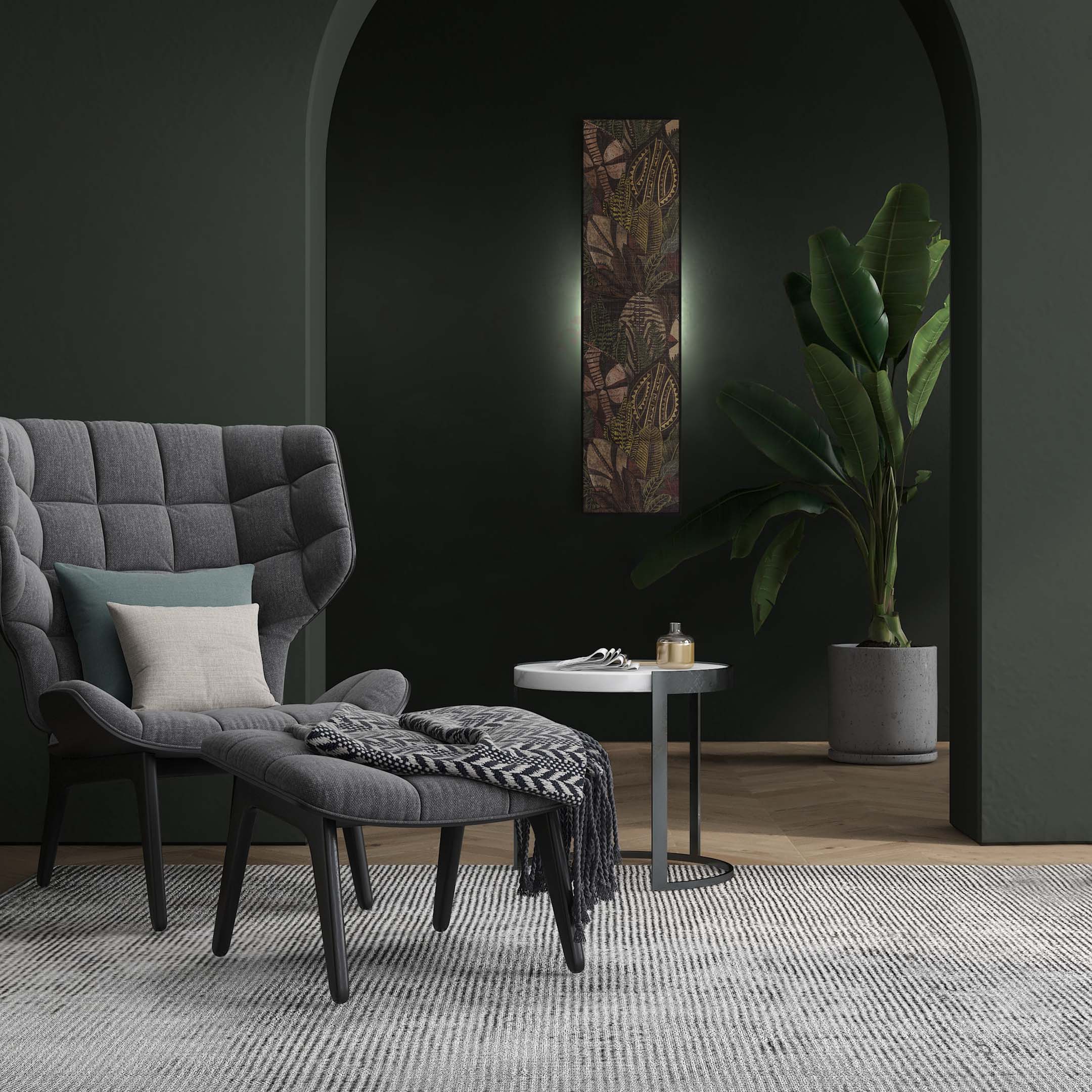 A premium back-lit series of wall lighting in high quality fabrics entirely crafted by hand, designed exclusively in our studio. An intelligent quadrilateral design that interacts with space to create soft accents.